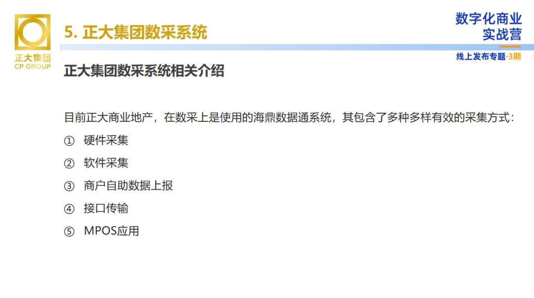 向陽先生表示,目前正大商業(yè)使用的是海鼎數(shù)據(jù)通系統(tǒng),這其中包含了多種有效的采集方式,如:硬件采集、軟件采集、商戶自助數(shù)據(jù)上報、接口傳輸、MPOS應(yīng)用等。
