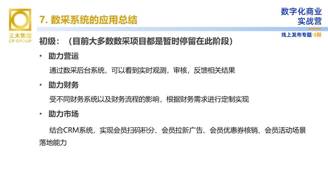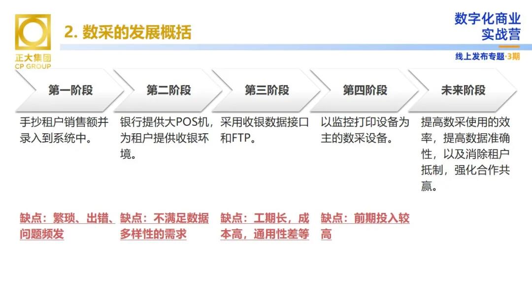 數(shù)據(jù)采集為正大商業(yè)帶來了哪些價值?向陽先生表示,數(shù)采對于商業(yè)運(yùn)營來講分為初級、中級和高級階段。