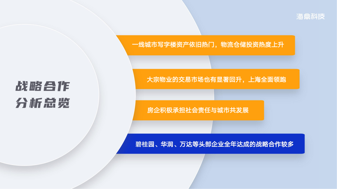 另外,在戰略合作上,萬達、龍湖、華潤、寶龍、碧桂園、金科等頭部企業動作頻頻,通過強強聯合,優勢互補的形式來實現企業的快速發展。