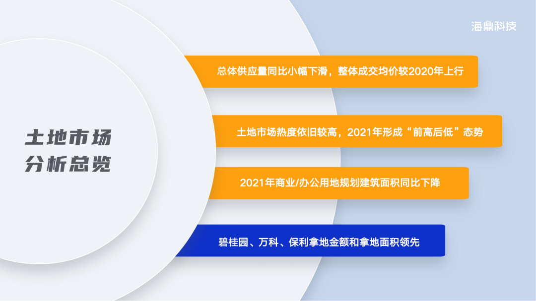 2021年是重點城市“兩集中”政策實施的第一年,土地市場成交規模整體穩定。從整體來看,2021土地“兩集中”政策一定程度上達到了“穩地價”效果。