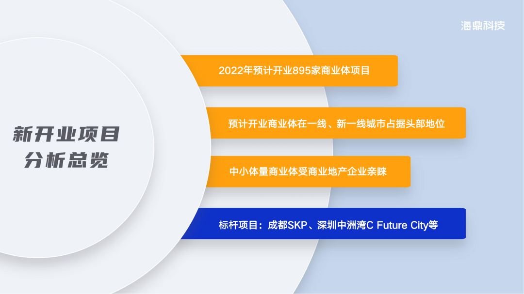 2022年,全國預計有895家商業體項目開業。一線、新一線城市的商業體開業數量獨占鰲頭,且中小體量商業體備受商業地產企業的親睞。