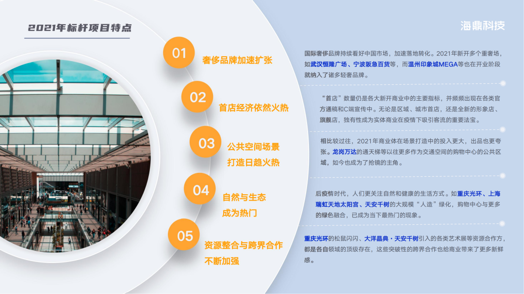 在2021年全國新開業的標桿項目中,具有以下特點: