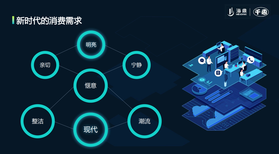 對店鋪的需求還是在這幾個方面——明亮的、親切的、寧靜的、整潔的、現代化的。只不過稍有變化,第一個就是不要滿意要愜意,第二個就是潮流,千惠裝修過一些主題門店,非常受消費者的歡迎。