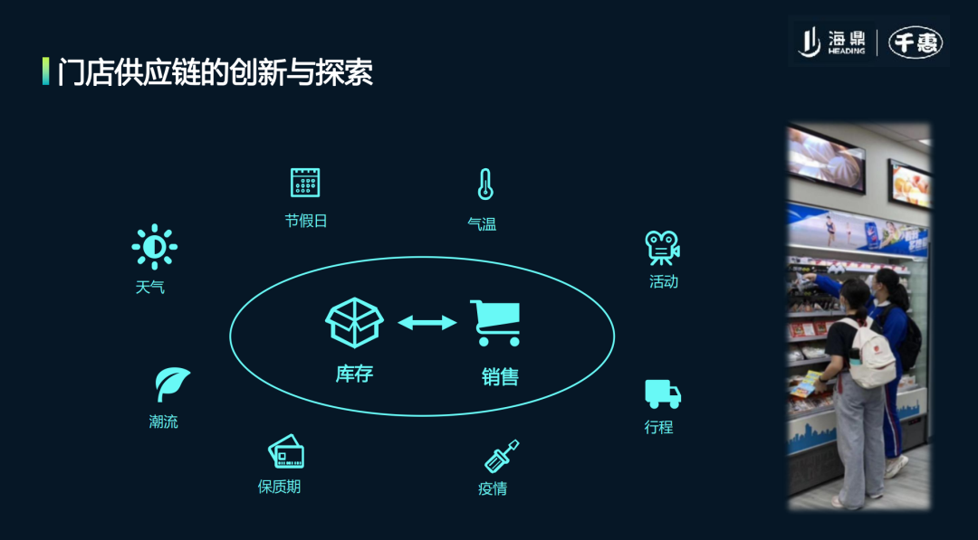 為了解決這些短板,海鼎為千惠打造了智能補貨系統,通過算法驅動整合歷史數據,形成面向未來的精準銷量預測,與補貨場景銜接提升補貨精度,通過流程驅動將智能決策成果推送至補貨執行功能模塊,由門店人員執行落地,執行結果數字化達成閉環。
