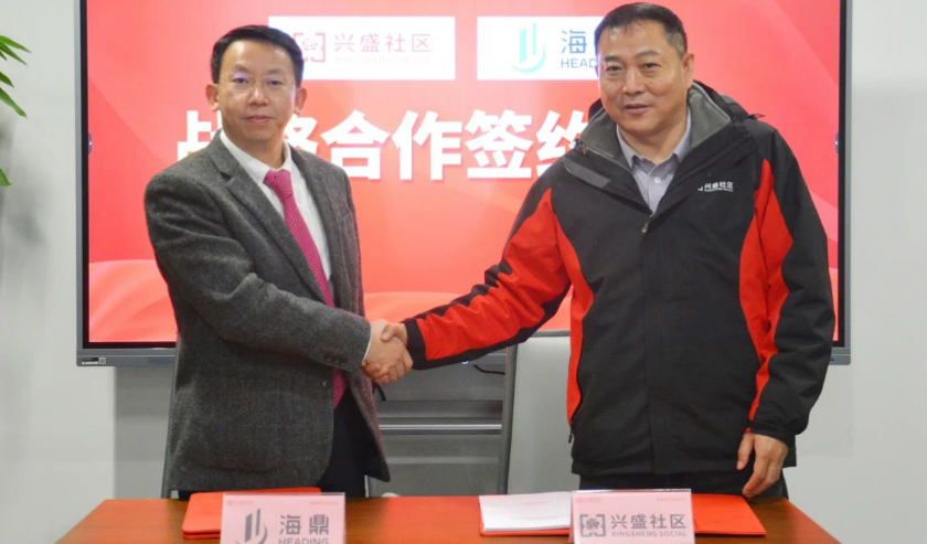 近日,興盛社區與海鼎戰略合作簽約儀式在湖南總部舉辦,興盛社區董事長兼總裁柴進,海鼎常務副總經理兼COO蔣作梁等出席簽約儀式,并現場簽署了戰略合作協議。